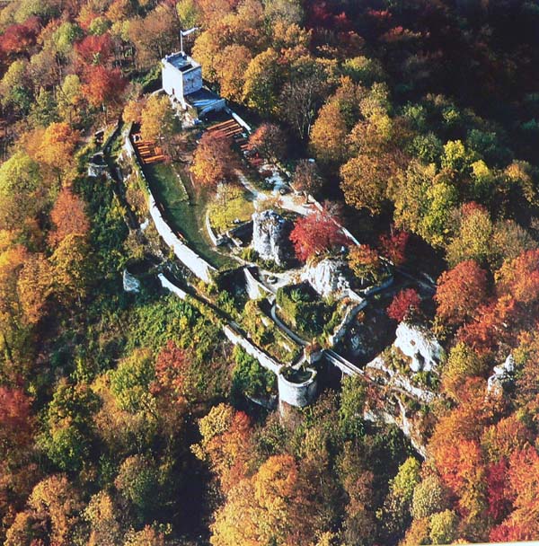 An Burgen reich, die von stolzer Vergangenheit künden, ist der Kreis Göppingen. Unter ihnen bleibt der Helfenstein bei Geislingen eine der eindrucksvollsten. Vor allem aus der Luft betrachtet. Ein geschichtliches Monument, umschäumt von den Farben des Herbstes. Hier findet sich eine eindrucksvolle Gesamtschau der Anlage mit Burgfried und Mauerkranz.